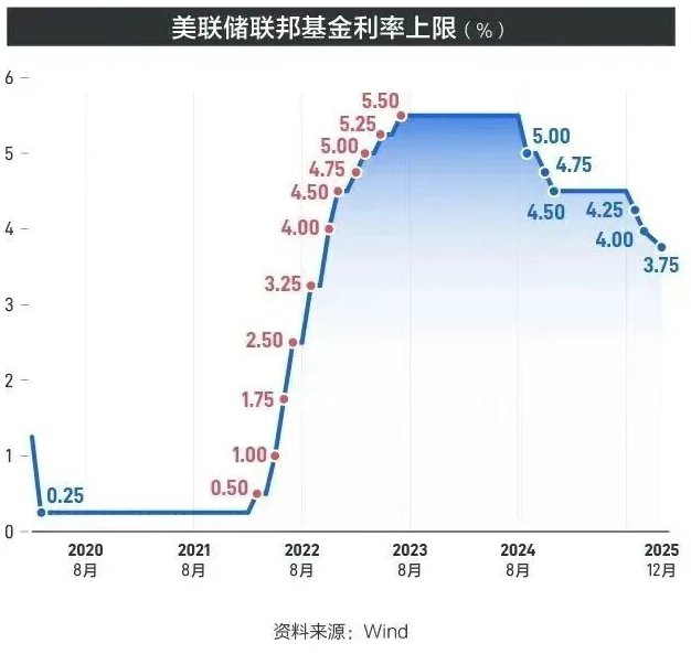 上周四,美联储将联邦基金利率目标区间降到3.5%至3.75%。