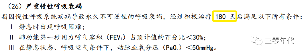 内地重疾险定义:永久不可逆呼吸衰竭,治疗180天后仍有指定症状