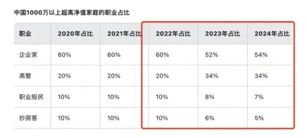 现在的真富人,早不是炒房投机客。数据显示,54%的高净值家庭是企业主,34%是金领阶层,靠实体经济创造价值;而不动产投资者占比从2020年的10%跌到5%——房地产早已从“造富机”变成“负债机”。