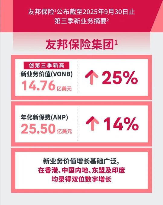 在香港保险市场,友邦早已超越普通玩家的范畴 —— 不仅连续 11 年稳坐核心榜单榜首,2025 年第三季新业务总值更飙升至 14.76 亿美元,创下历史峰值。凭借超三成的内地访客业务占比,它更成为无数内地家庭配置保险时的首选品牌。