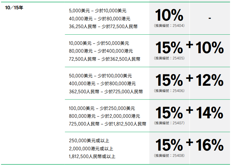 ⑤10年/15年缴:首两年保费折扣可高达31%