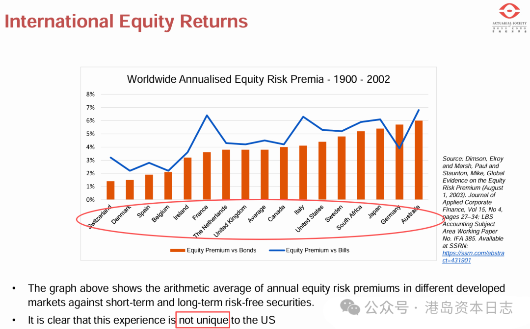 以美股市场为例,精算师协会的研究显示,在过去五十年间,美股年均收益率较无风险利率高出4.8%,且仅有两次年收益率低于5%分位数(低至2.22%),整体表现具备较强的稳定性。自1980年以来,标普500指数年均回报率超过10%,即便其间经历数次金融危机,其长期的复利增长效应依然十分突出。