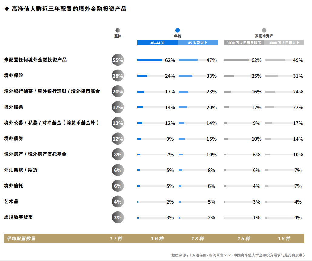 过去三年中,45%的受访高净值人群已配置境外金融产品。