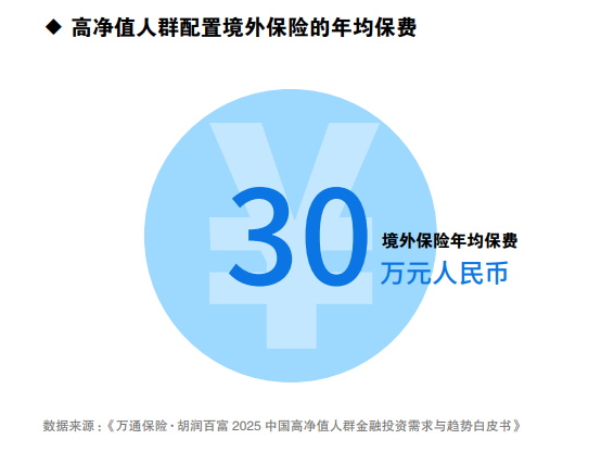 高净值人群配置境外保险的平均年保费约为30万元 人民币。