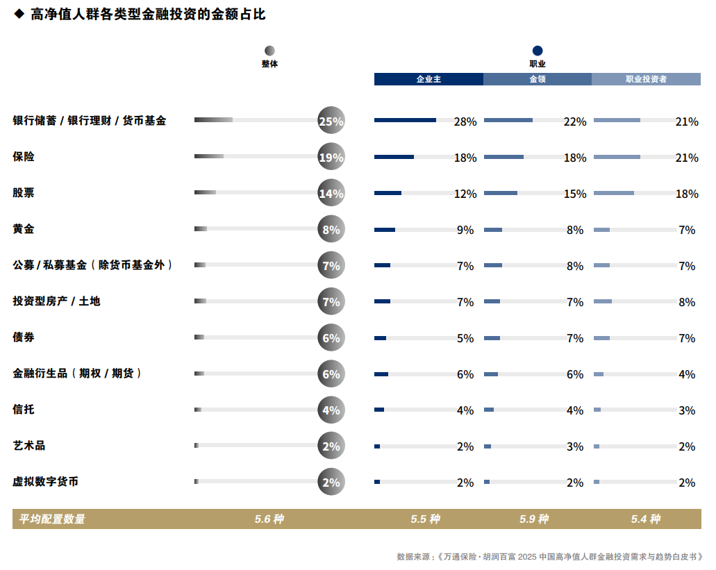 为实现上述目标,他们普遍采用多元化资产配置策略,平均持有 5至6种不同类型的投资产品。