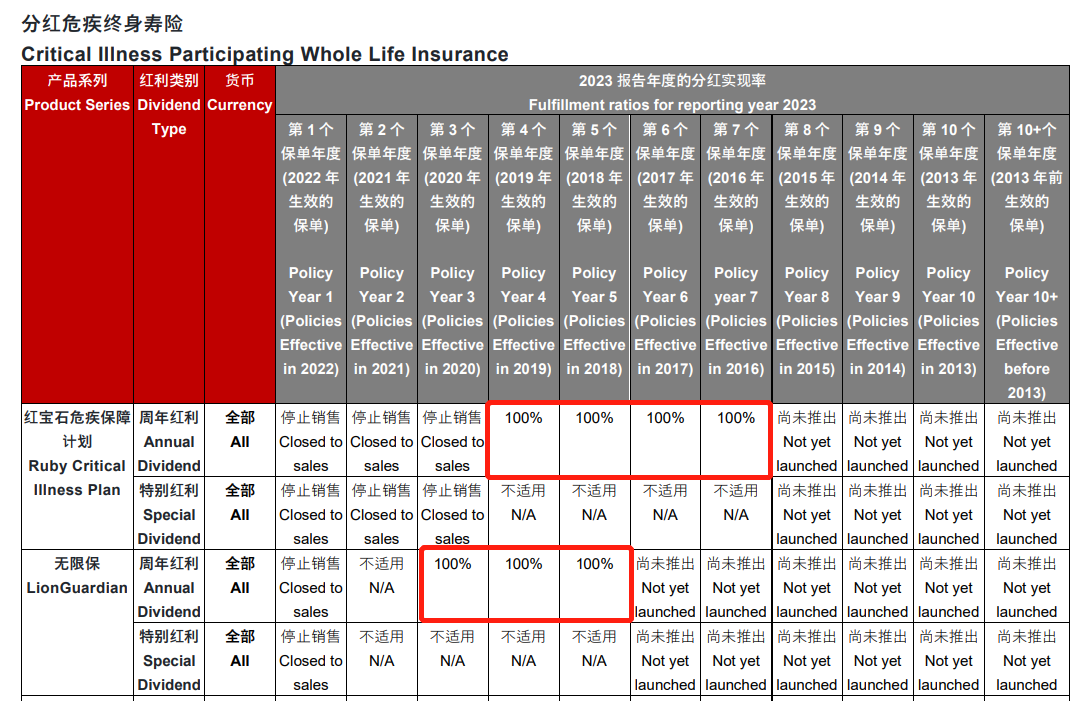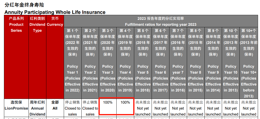根據保監局發佈的GL16指引,保險公司須就分紅保單的非保證利益,發佈分紅實現率,以顯示保險公司在實踐派發預期非保證利益的表現。分紅實現率適用於自2010 年起曾發出新保單,及於報告年度內仍有有效保單的分紅產品。