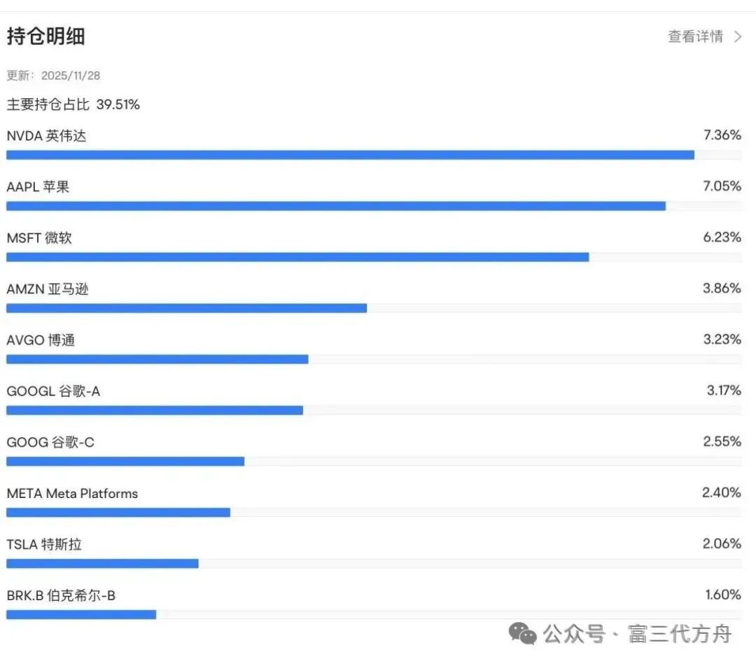 指数持仓成份股:英伟达、苹果、微软、亚马逊、谷歌、特斯拉、伯克希尔等等。