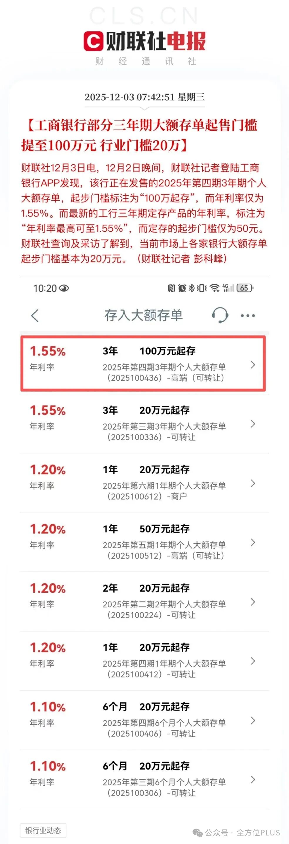 而且,3年期定存起售门槛提至“100万元”。