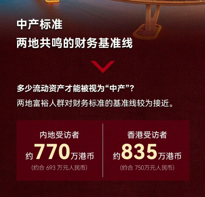 这一标准较2022年香港地区数据大幅上涨4成,远超大众认知里“有房有车”的中产画像。