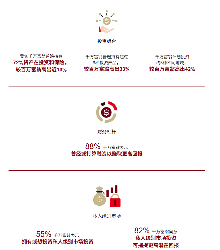 此外,超半数(55%)千万富翁已布局或有意向投资私人级别市场,82%认为这类投资蕴藏着更高的潜在回报。