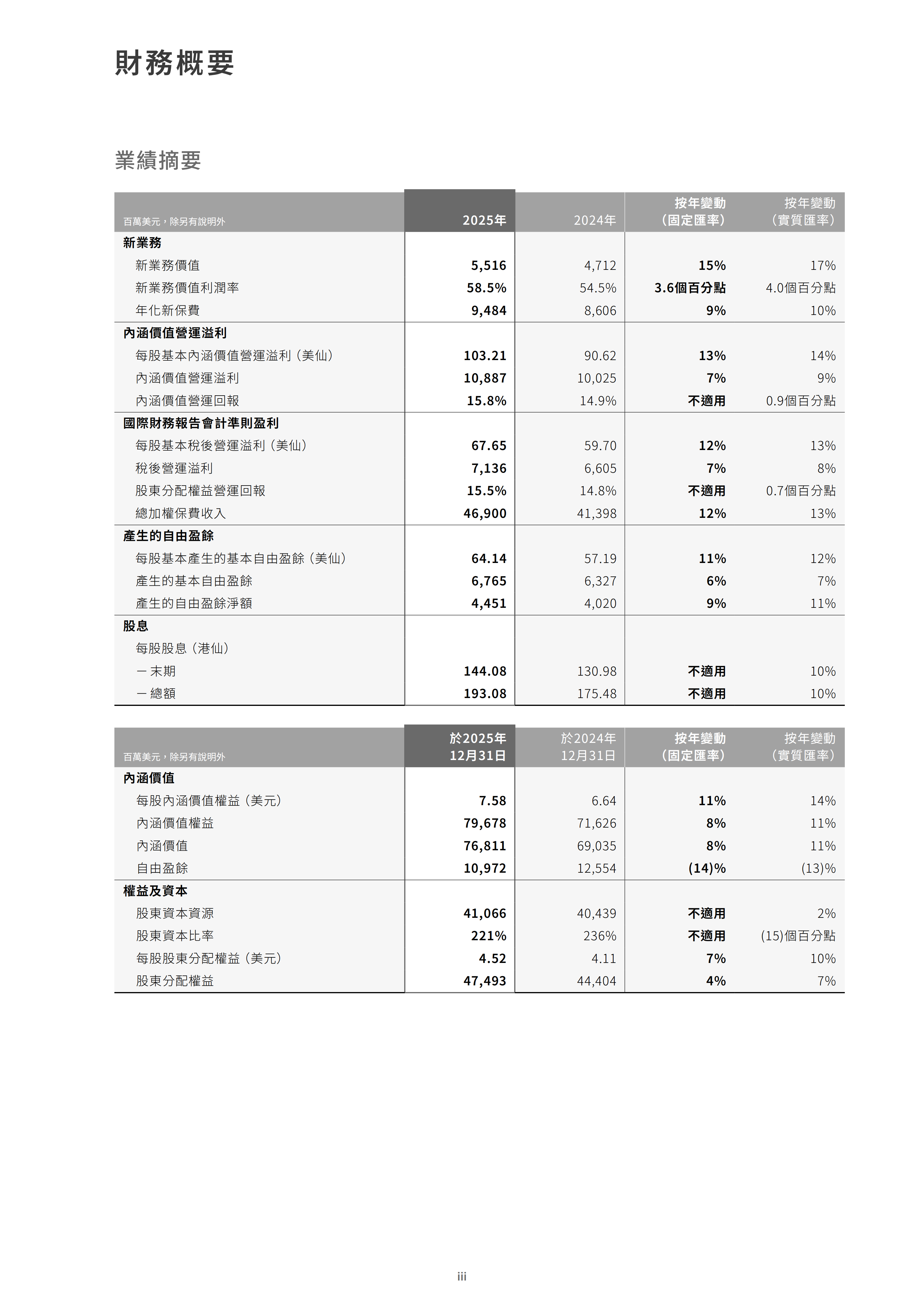 新业务价值:55.16 亿美元,同比增长 17%,反映新增保单的长期盈利潜力持续释放;