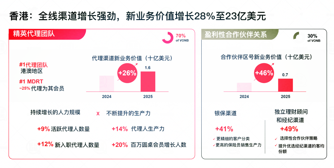 友邦的业绩突破,离不开分销渠道的多元协同与高质量发展,两大核心渠道全线飘红,成为增长核心引擎: