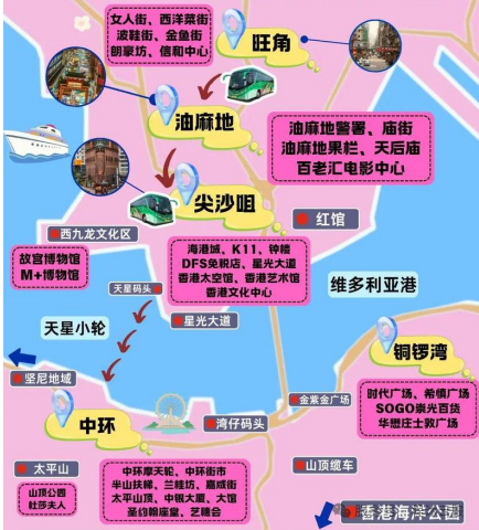 • 前往海港城:从机场乘坐巴士【A25】-启德方向 → 【新港中心;广东道】站 → 下车即达;