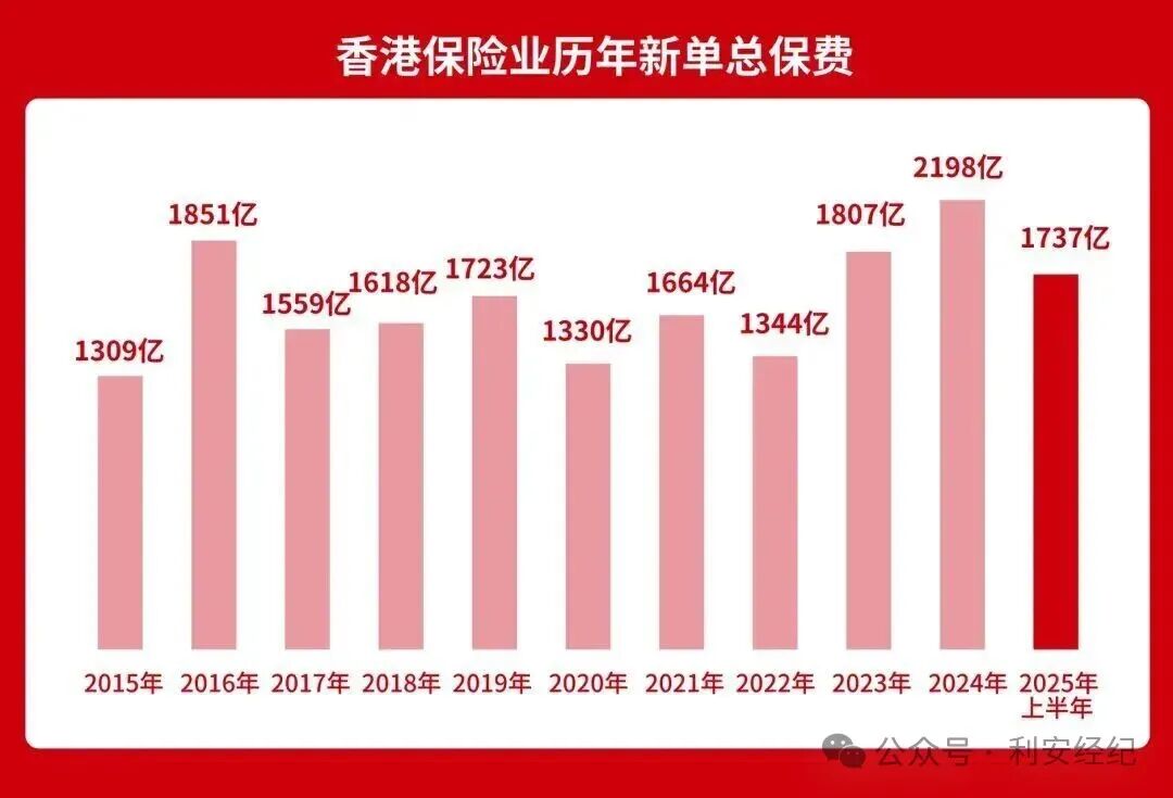 带大家看一组数据,2025年上半年全港新单总保费达1737亿港元,同比增长50.3%,创历史新高。其中个人新单保费占比99.9%,延续2024年增长势头,首季度934.1亿港元,二季度803.3亿港元。