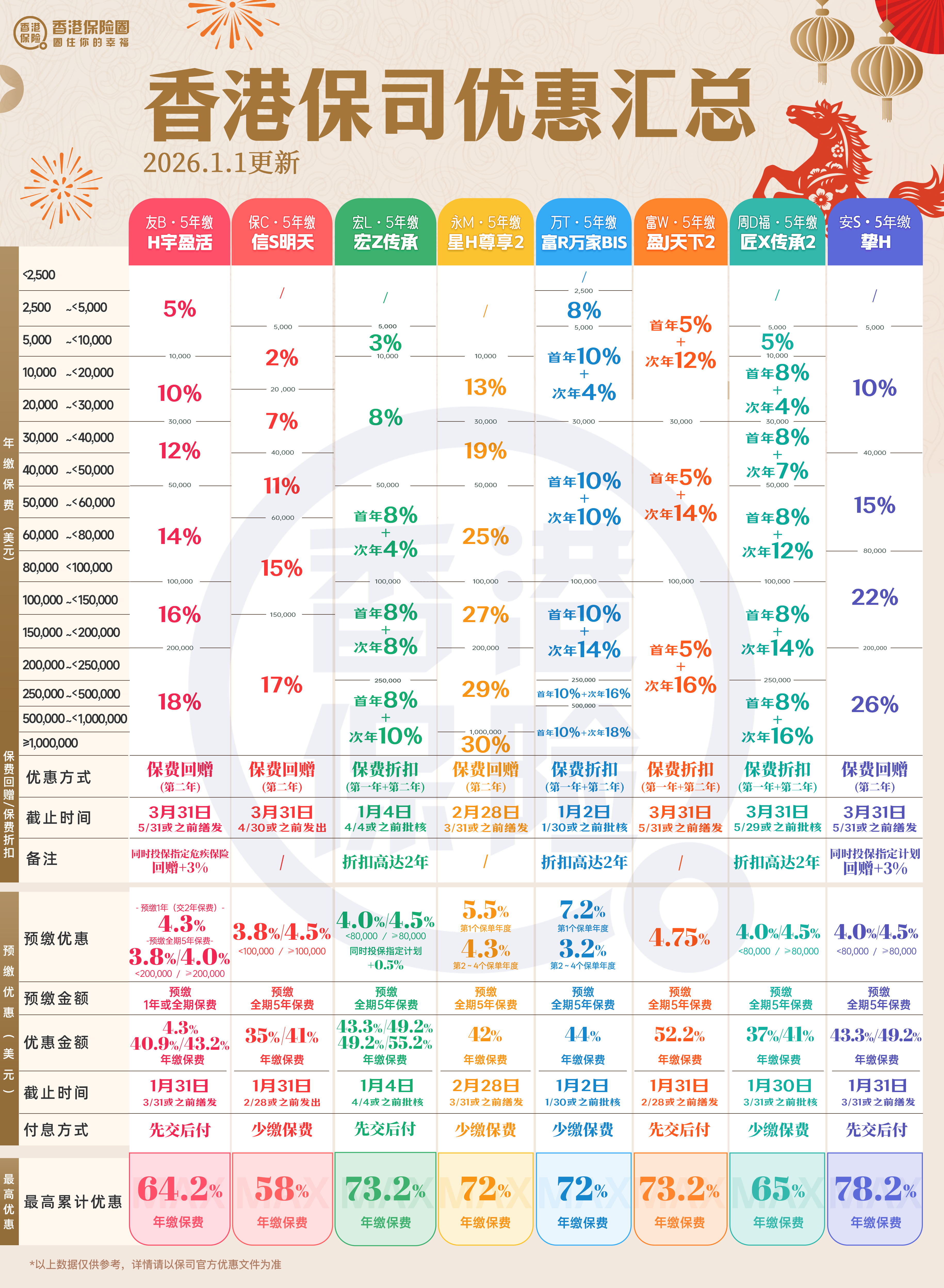马上发财!香港保险1月开门红优惠!预缴利率3.8%-5.5%维持高位!