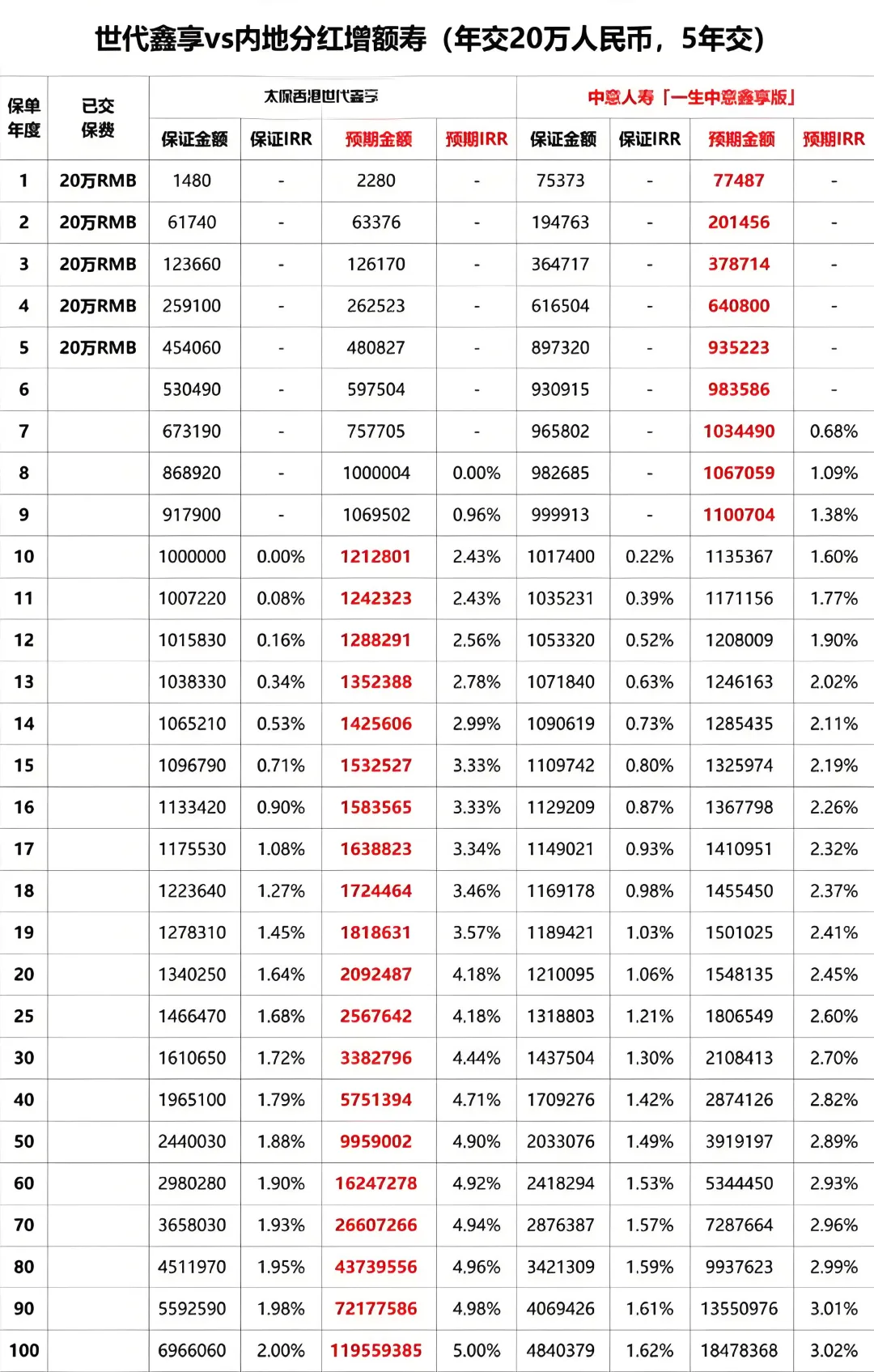 我们以0岁男孩,年缴6万美金,5年缴为例,对比17款市场热门产品: